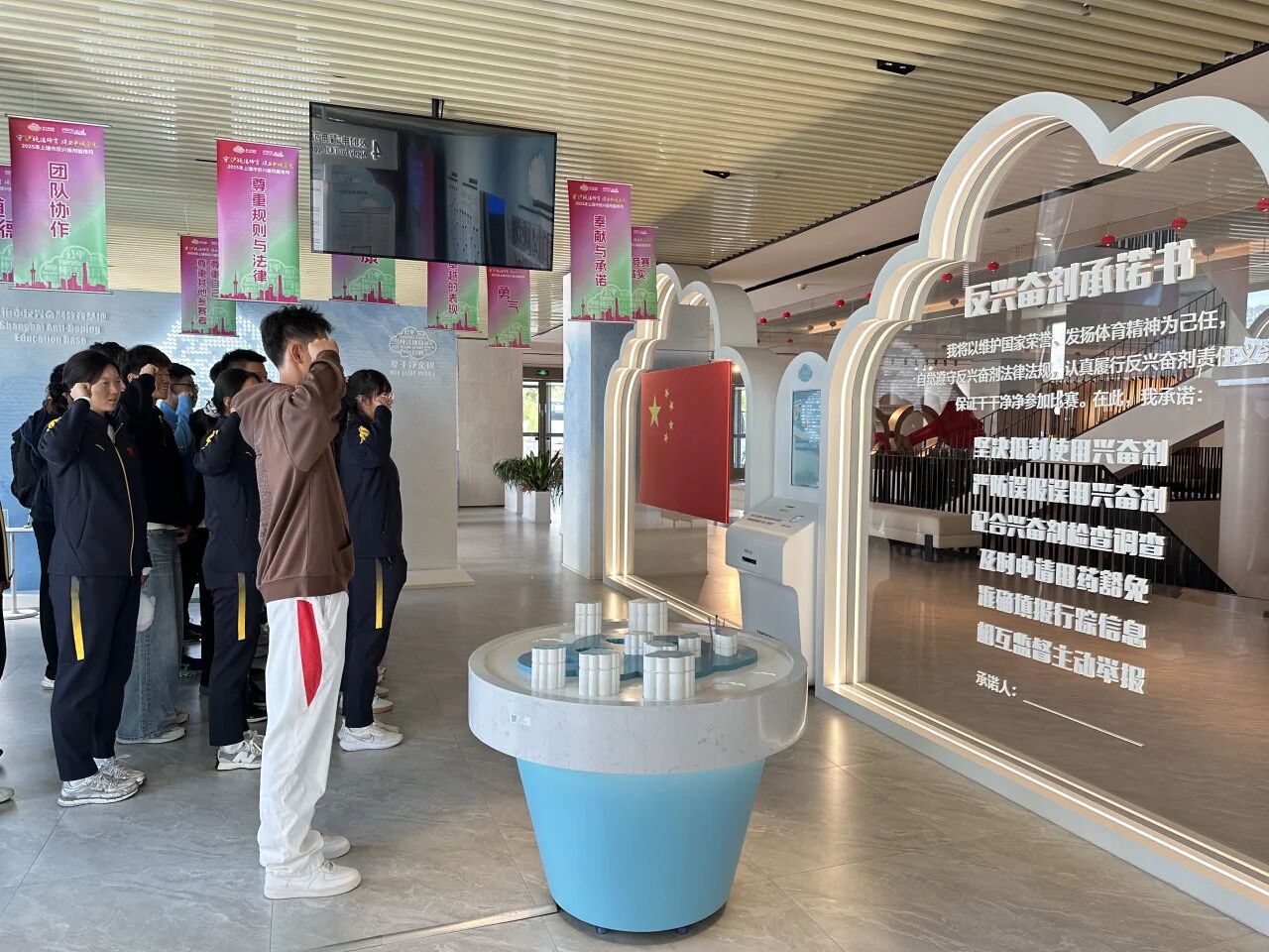 参观过程中,队员们通过基地内丰富的图文展示、实物模型及互动体验设备,系统了解了反兴奋剂工作的历史背景、政策法规及最新进展。“纯洁体育”讲师李德平详细介绍了兴奋剂的种类、危害以及检测流程,并结合真实案例,强调了违规使用兴奋剂对运动员职业生涯和身心健康的严重影响。