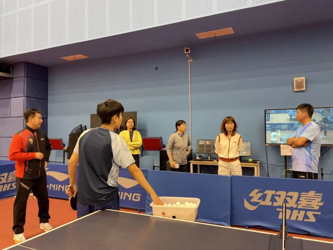 理论课程结束后,全体人员前往乒乓球馆进行实操学习。裁判专家重点讲解了“鹰眼”技术在发球判罚中的应用,并组织运动员进行发球演练,通过即时指导与纠正,强化了“讲练结合”的教学效果。