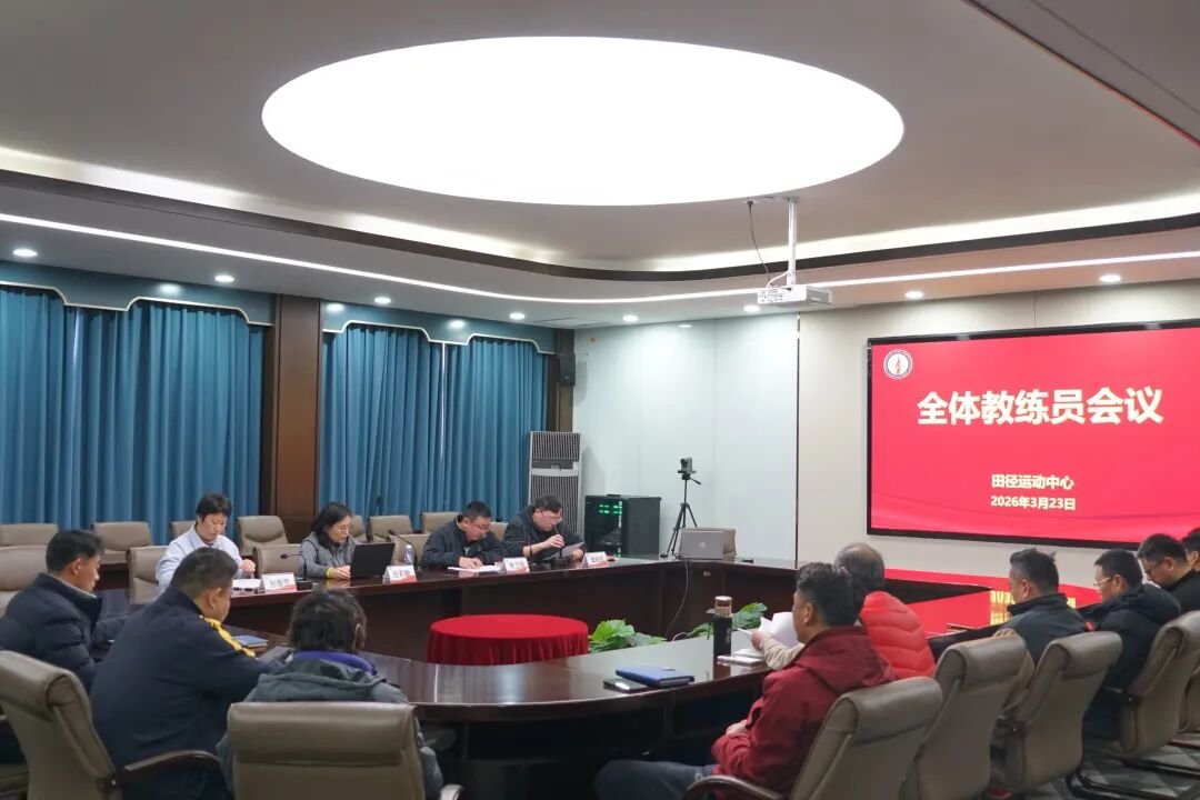 为深入贯彻竞体中心全面从严治党会议精神,进一步强化训练管理、夯实备战根基,田径中心于3月23日中午召开全体教练员会议。中心领导班子、全体一线教练员、工作人员参加会议。