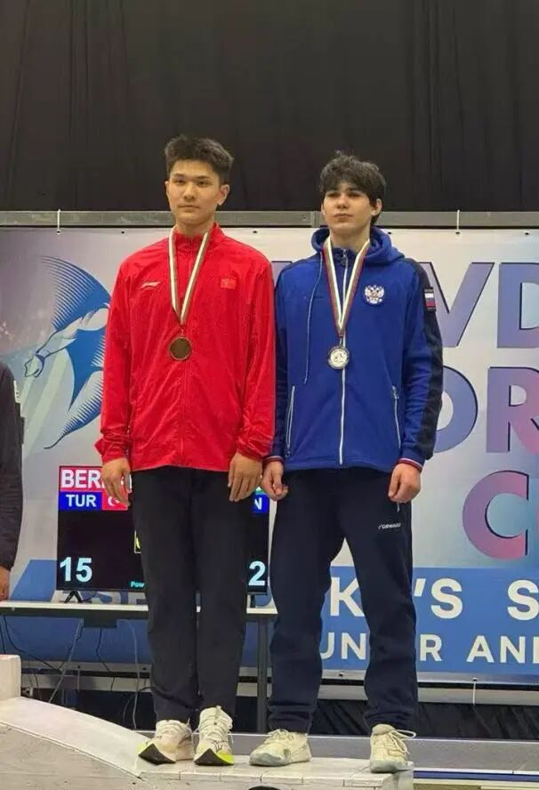 司徒柏恒(左)夺得男子佩剑个人银牌